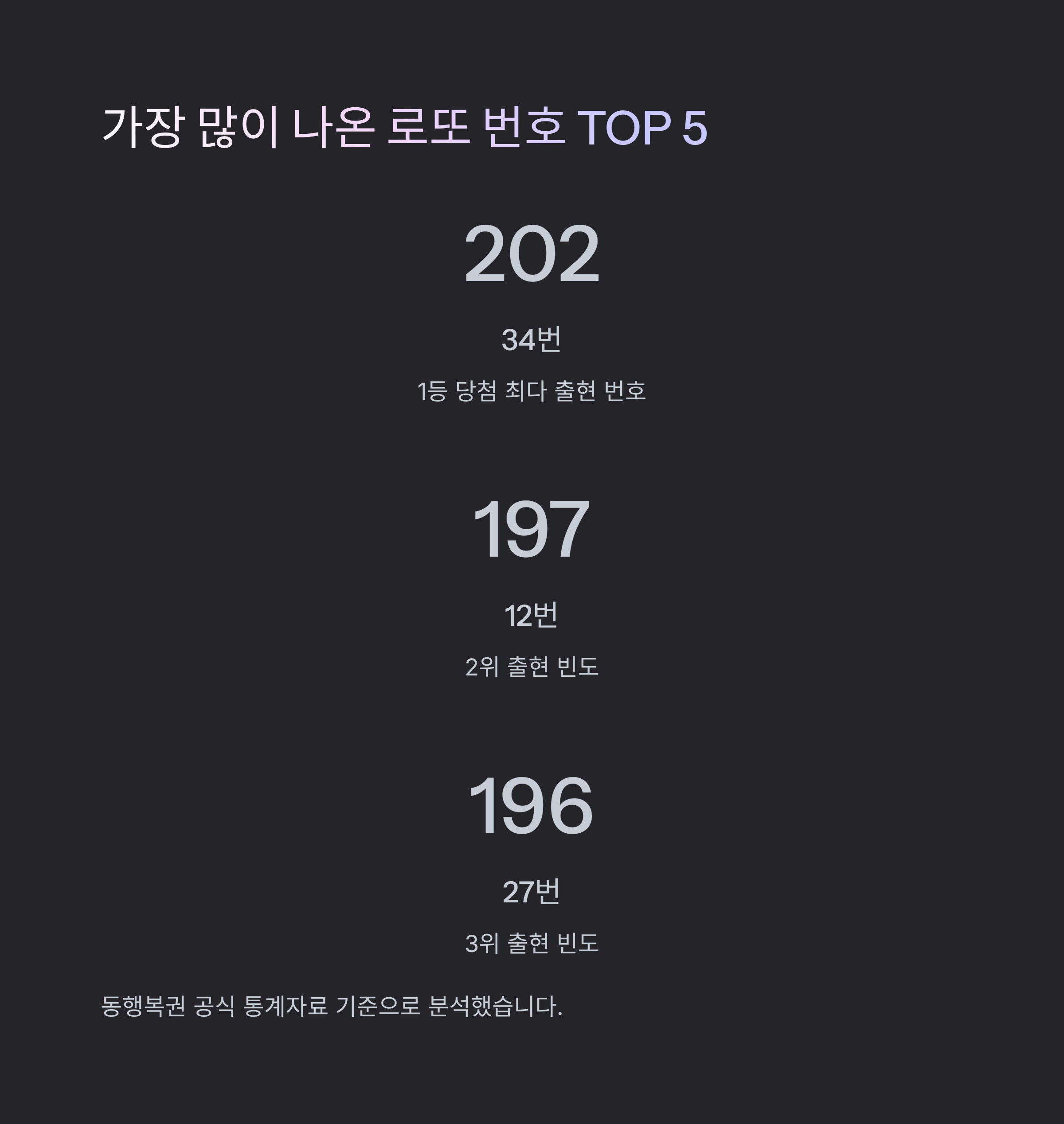 3. 로또 1등 번호 중 가장 많이 나온 번호 조합 추천